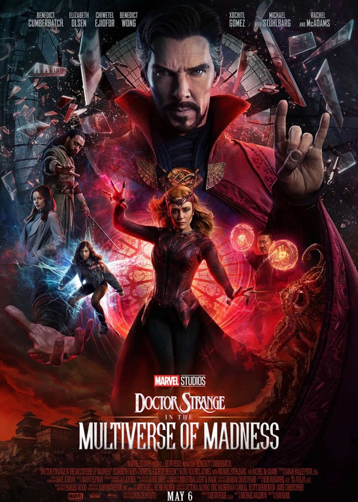 This movie is an Actuon/Sci-Fi/Horror/Adventure/Fanstasy/Comic movie. It has a runtime of 2h and 6 minutes. It starrs Benedict Cumberbatch, Elizabeth Olsen, Chiwetel Ejiofor, Benedict Wong and Xochiti Gomez. It was directed by Sam Raini aka the guy who directed all of the 2000s Spider-Man movies! It was written by Michael Waldron (Rick and Morty and Marvel’s Loki mini-series 2021).