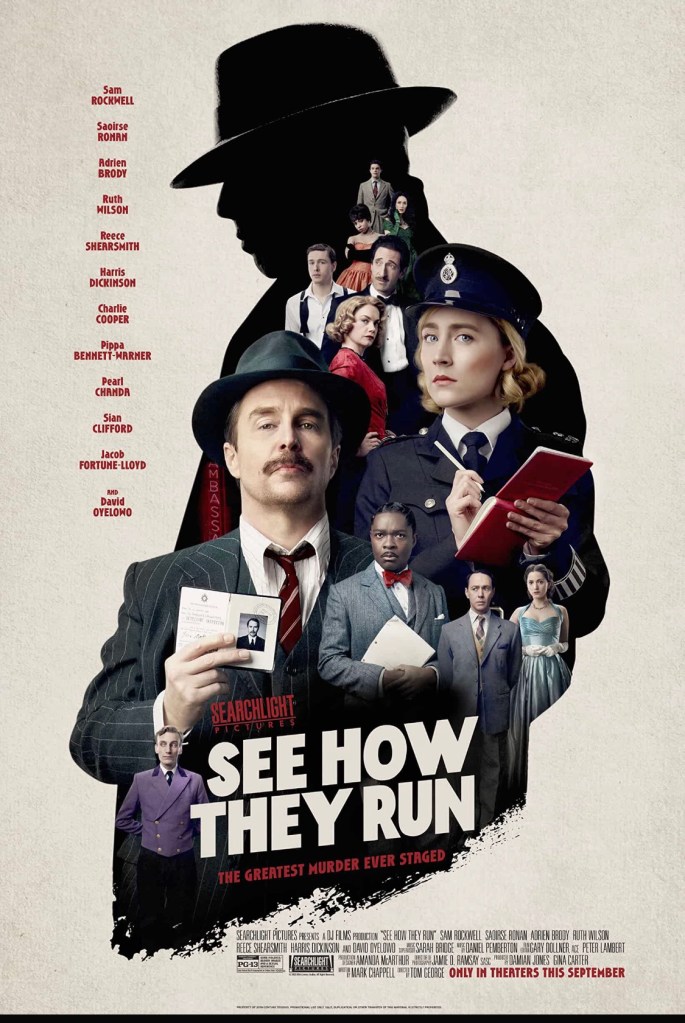 A nice 50’s setting, it’s also a nice homage to Agatha Christie like murder mysteries. Also like the look at old Hollywood in London. Saorsie Ronan over eagerness plays well off of Sam Rockwell’s world weariness. A fun whodunit that keeps you guessing till the end, has a lot of twists. And the rest of the cast don’t disappoint either. If you are in the mood a fun murder mystery, we’ll if liked Knives Out, then I hope you’ll give See How They Run a look.